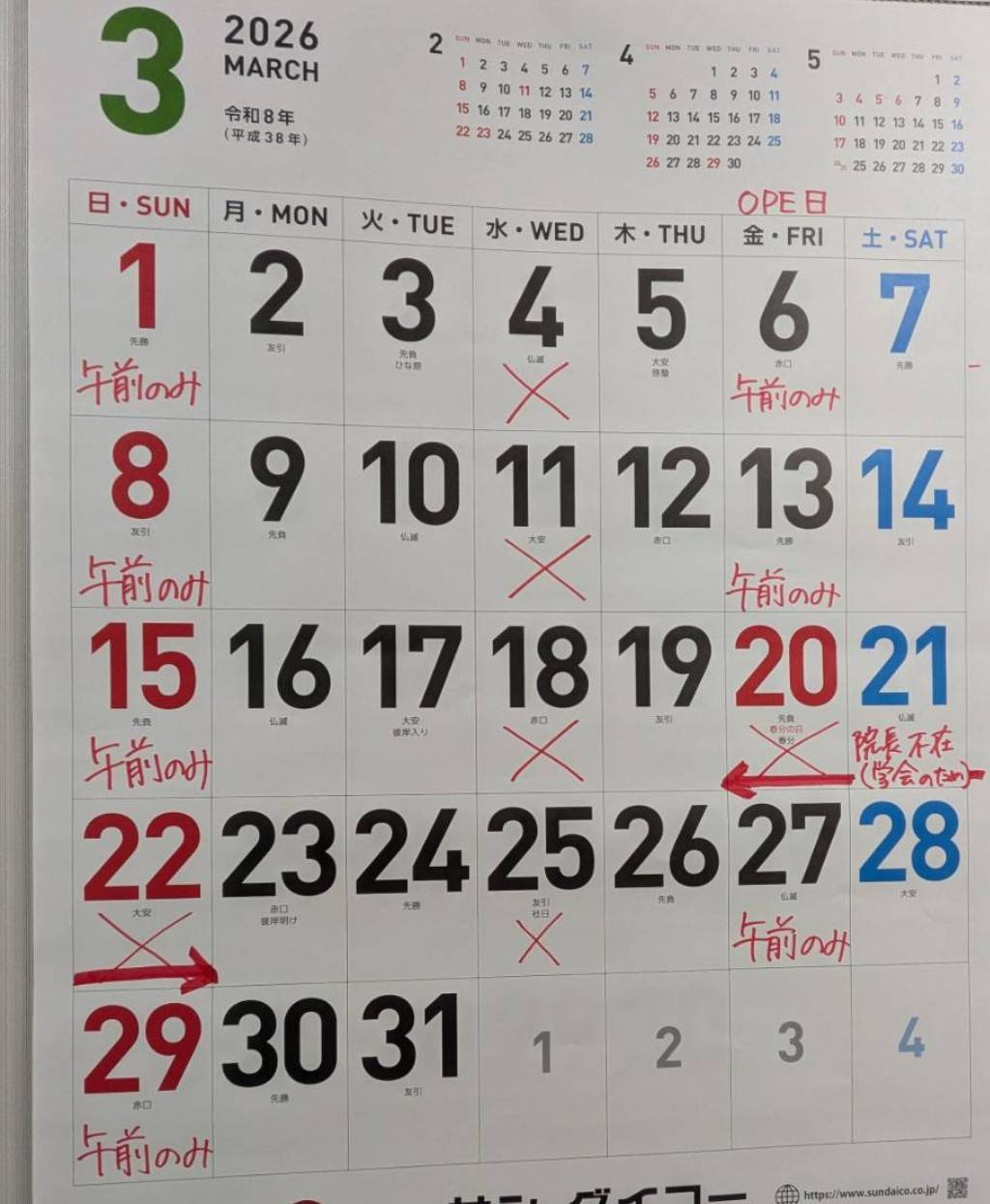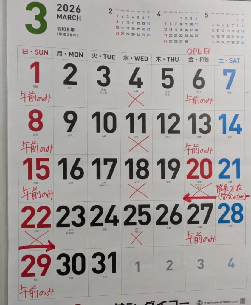 遅くなりましたが、3月休診日のお知らせです!